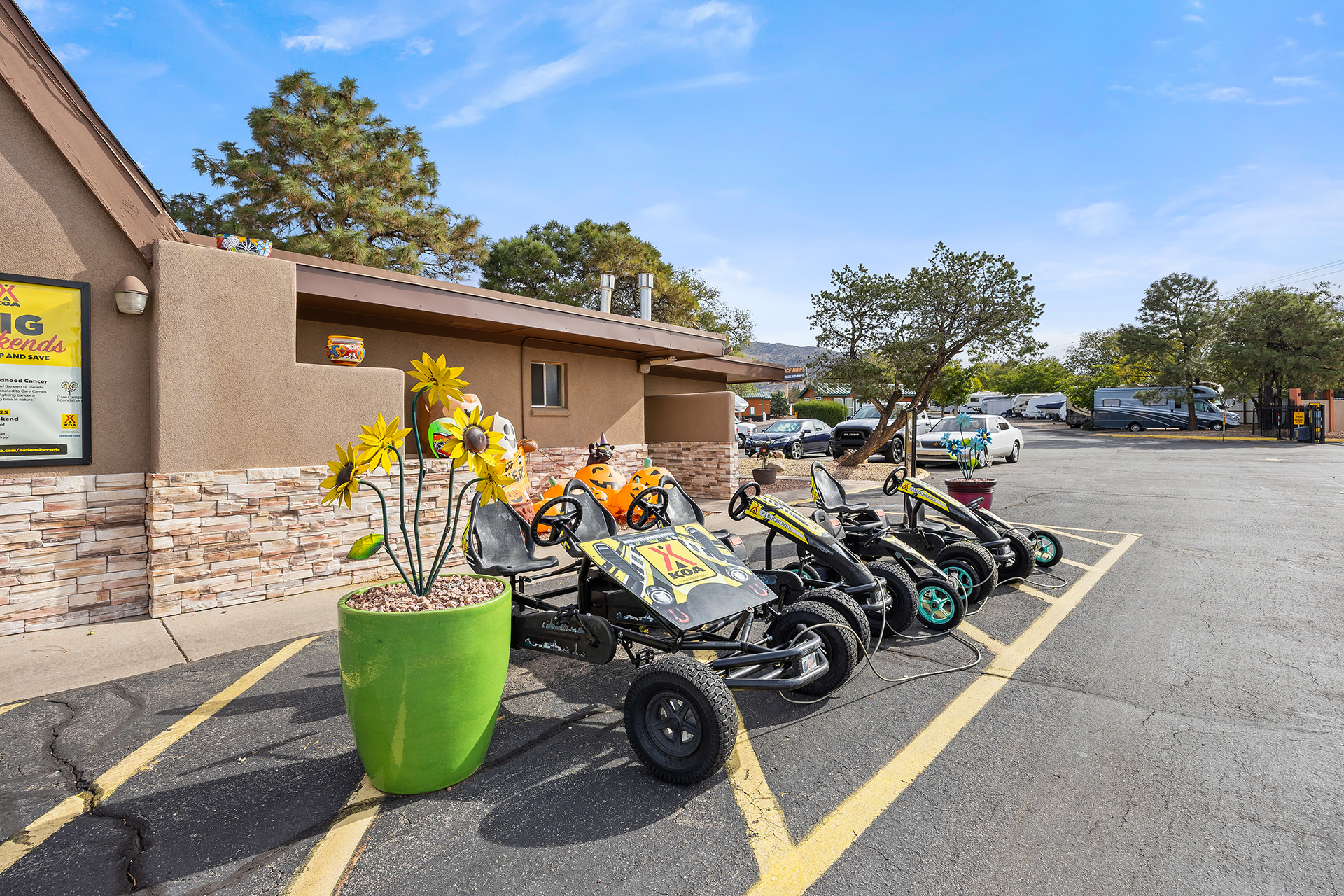 There's plenty to do during your camping stay with us. Our KOA is conveniently located near the Albuquerque International Balloon Fiesta, the world's longest aerial Tramway, and we are the closest campground to Expo New Mexico Fairgrounds. The campground is also conveniently located near a variety of restaurants, the aquarium, zoo, multiple museums and the Old Town shopping district.