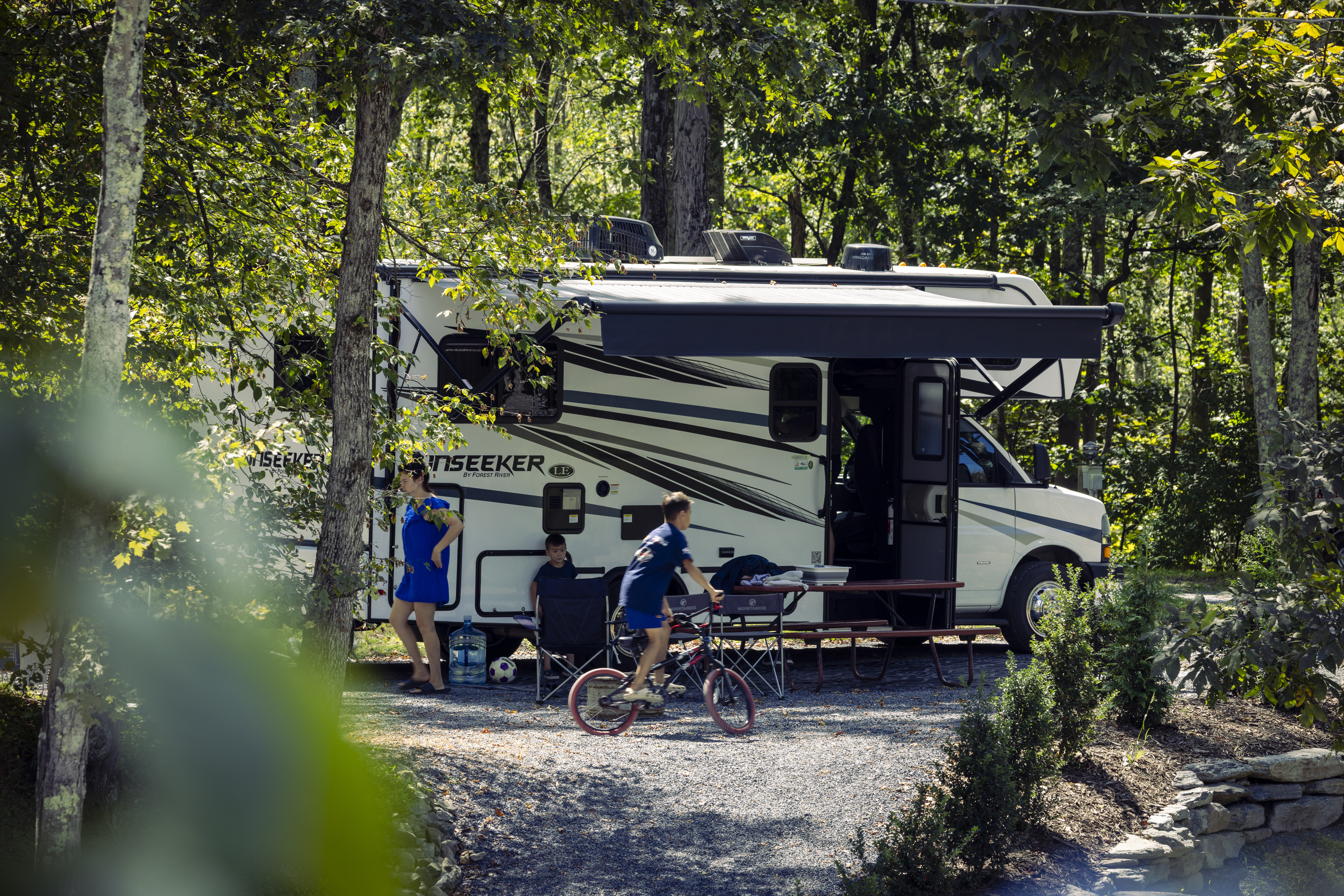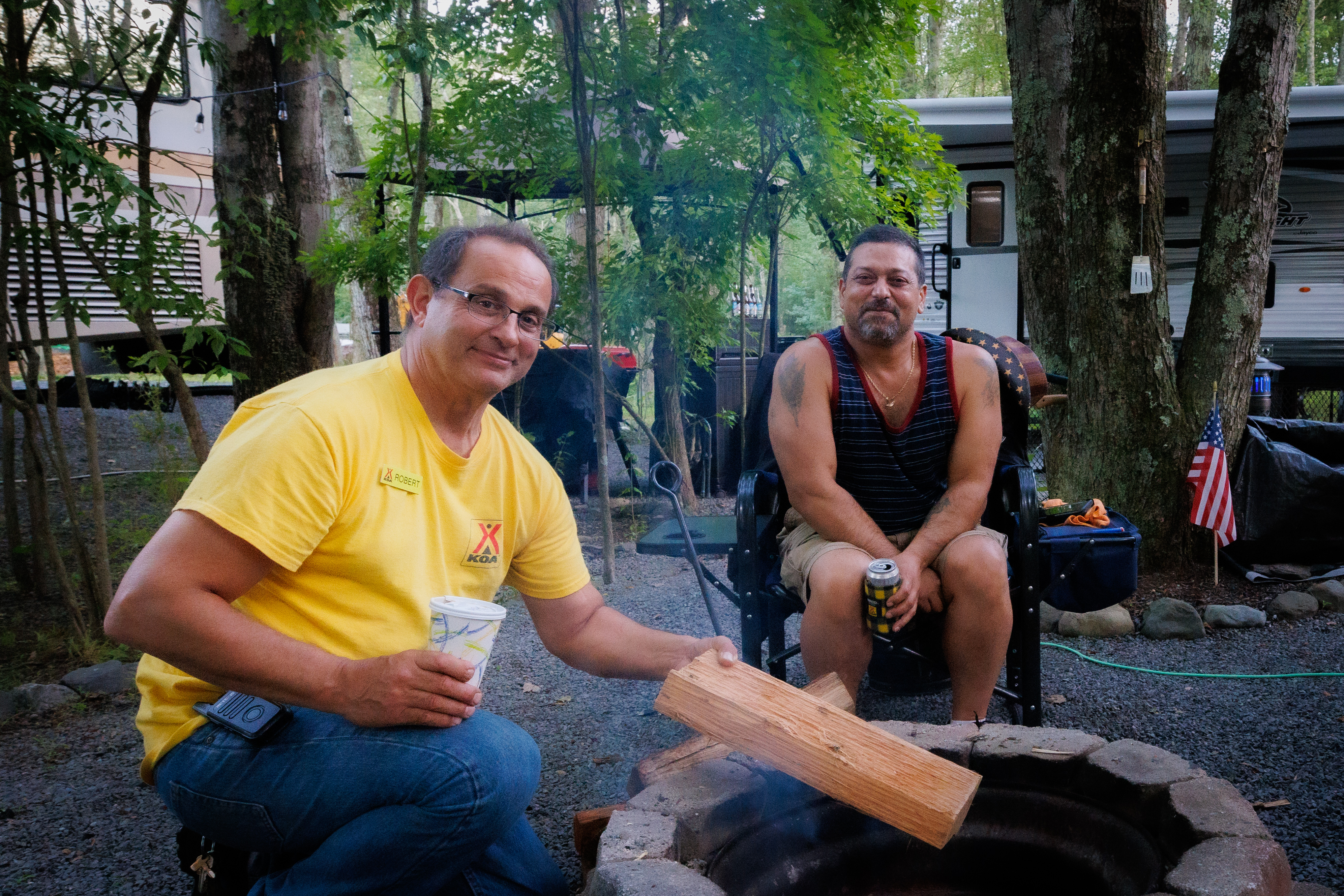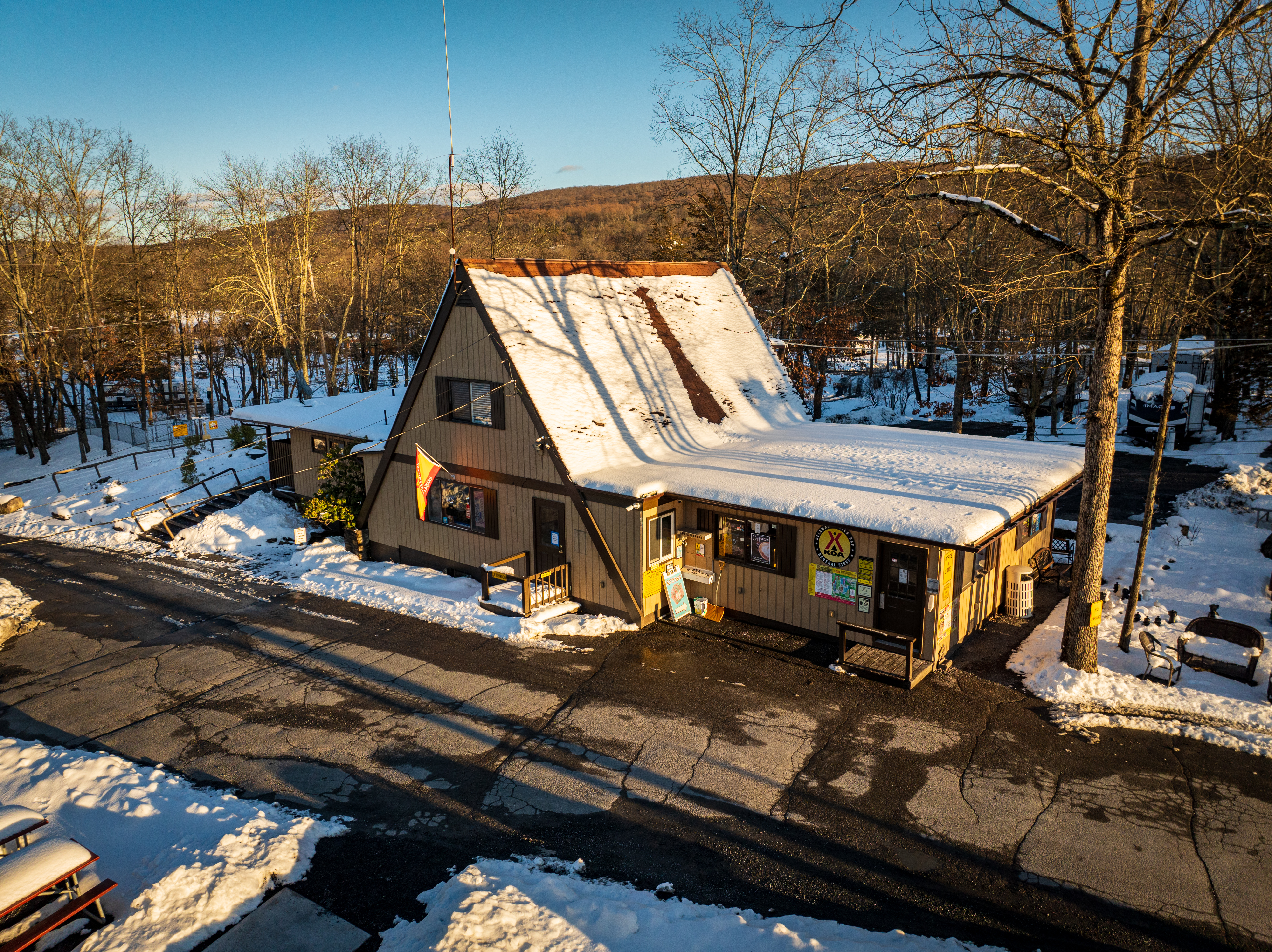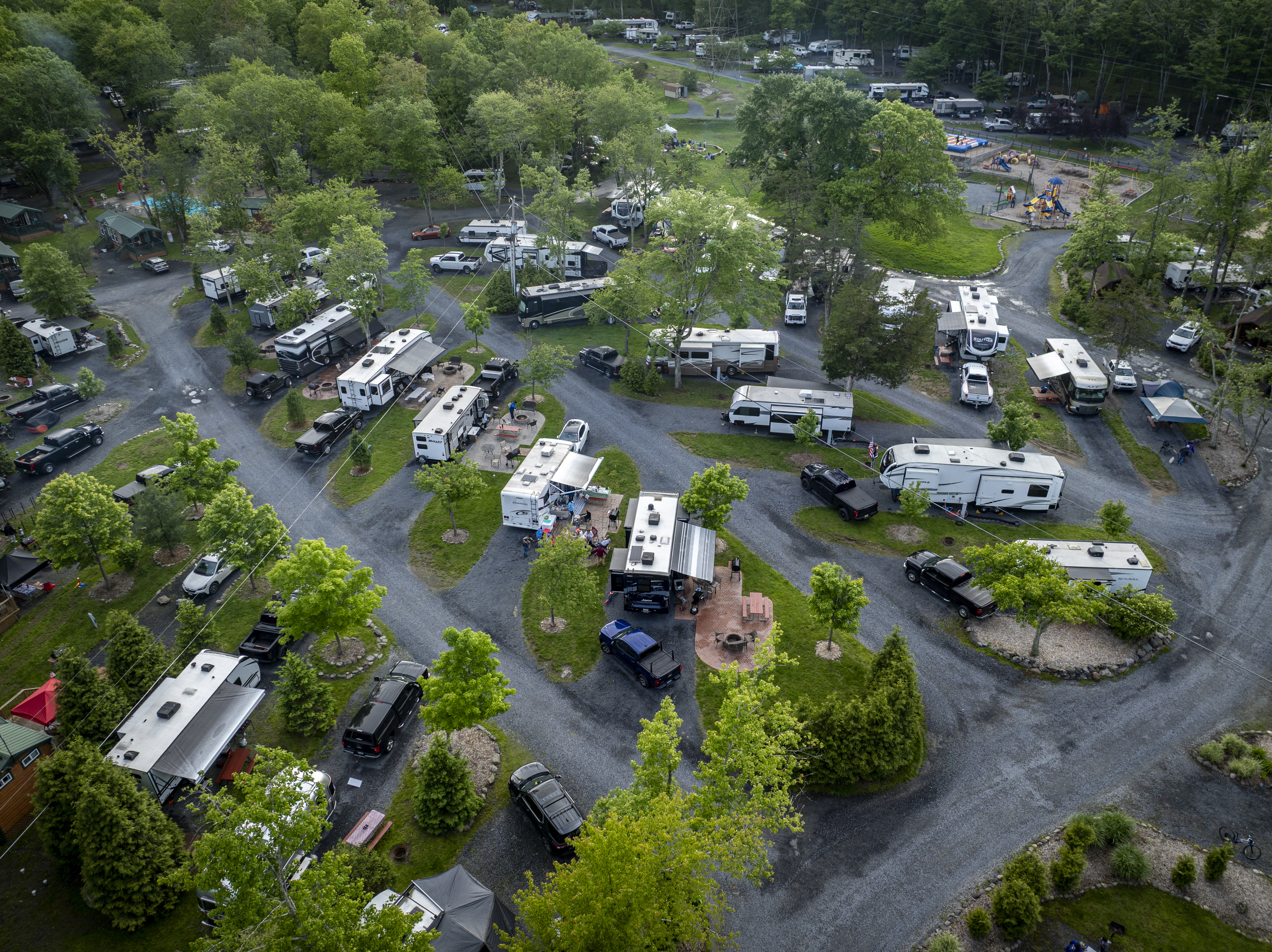 The Delaware Water Gap-Pocono Mountain KOA campground offers the Pocono Mountains' finest family camping! With level pull-through sites as long as 102 feet available, our campground is truly “Big Rig Friendly!” Patio sites, with upscale seating and one-of-a-kind campfire elements, are sure to please even our most elite campers. No RV? No problem! Enjoy a comfortable stay in one of our rustic or deluxe cabins. Our level tent sites offer scenic surroundings for those who want to “rough it” in style.