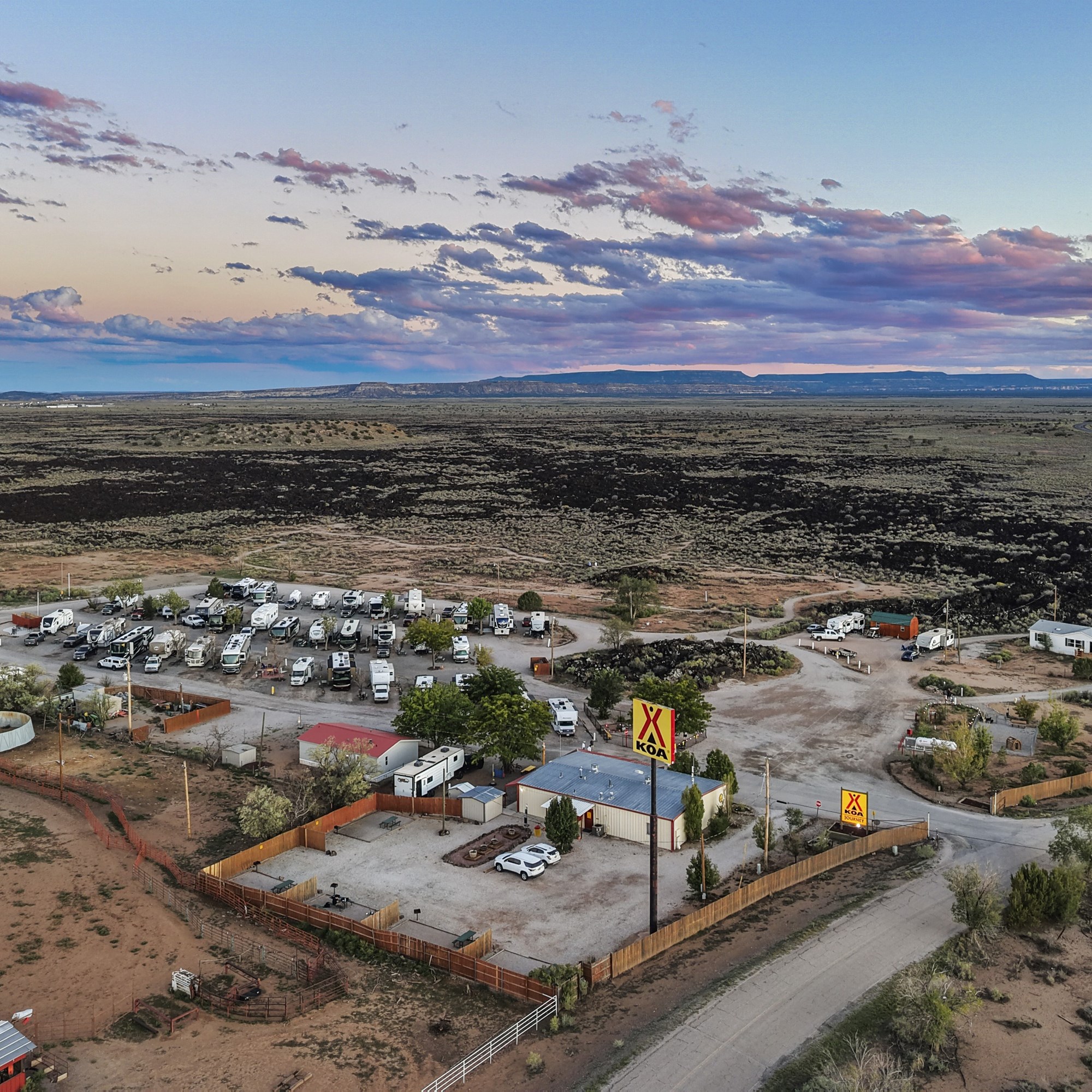 Nestled along historic Route 66, Grants, NM is a hidden gem bursting with culture, natural beauty, & outdoor adventure. Surrounded by rugged volcanic landscapes, it's the perfect basecamp for exploring El Malpais National Monument with its lava tubes and hiking trails, or El Morro National Monument, home to ancient petroglyphs and centuries-old carvings. Take a trip back in time at the New Mexico Mining Museum, or hit the off-road trails in the nearby Zuni Mountains for hiking, biking, and ATV fun.After a day of adventure, unwind at the Grants KOA, where comfort meets convenience. Enjoy a free pancake breakfast each morning, hot dinners delivered right to your site- dont forget to order the Pie for dessert, and stay in large pull-thru RV sites or cozy cabin rentals. Whether you're here to explore or relax, the Grants KOA makes every stay memorable.Max pull thru: 85 feet, Overflow Parking available.