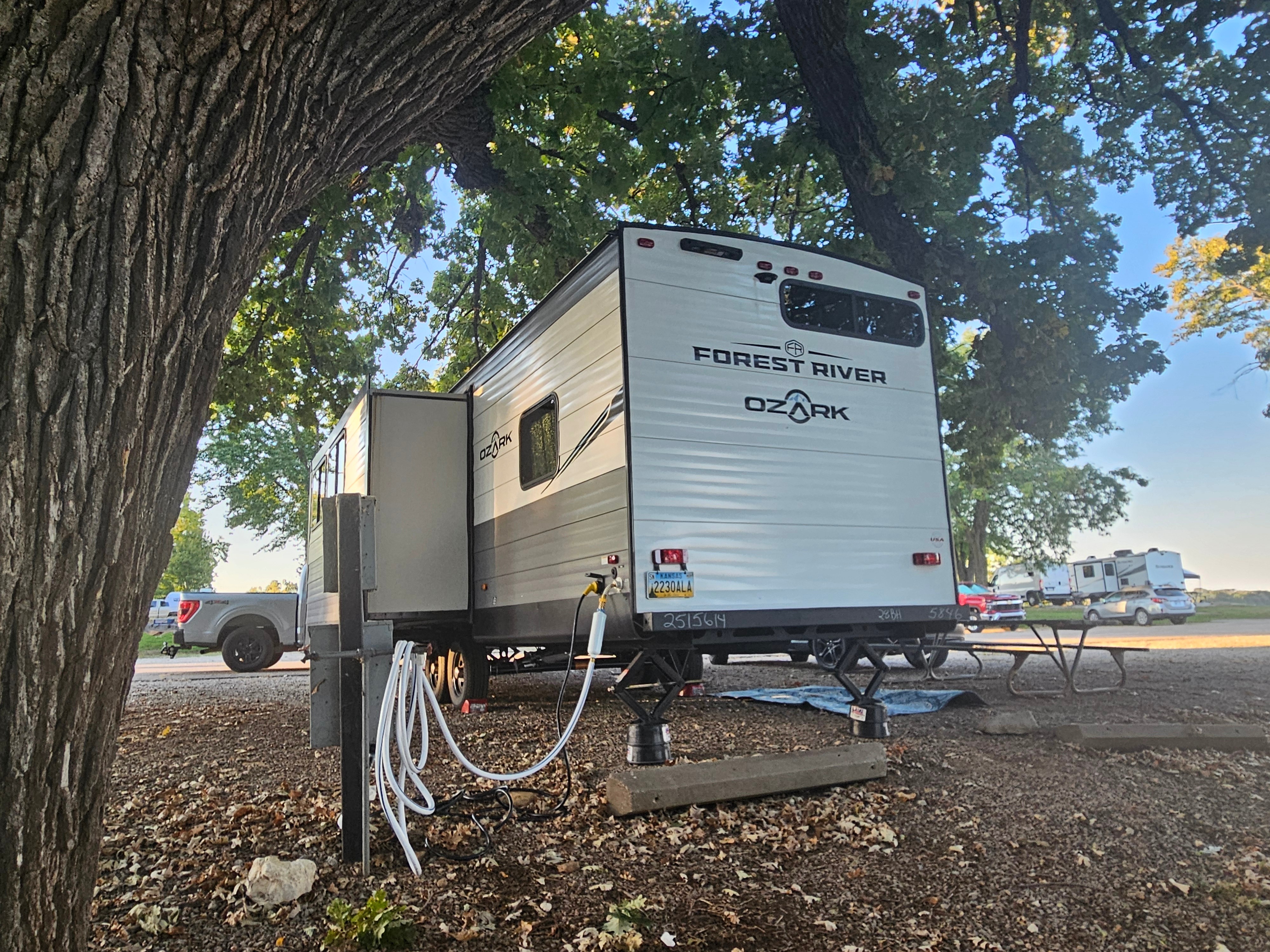 Visit the Lake Shawnee Campground, located in Topeka, Kansas. A playground and swimming cove make the park an ideal setting for family-friendly camping. Go on a hike, go fishing, or play a round of golf. Excellent boating opportunities are available on the lake, and several sports courts are located on site. Many of the campsites offer water and electrical hookups. Make a reservation or arrive early to guarantee a spot.